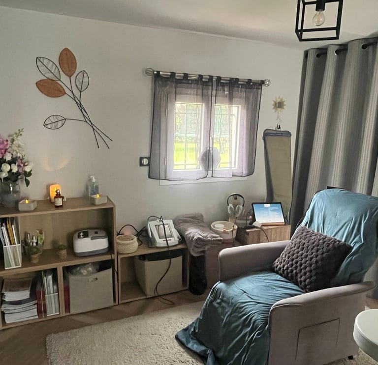 Mon cabinet est adapté à tous. Je vous accueille avec écoute et bienveillance. Je propose une approche personnalisée, adaptée à chaque âge et situation, pour favoriser votre confort, vous aider à retrouver votre bien être et reprendre le contrôle de votre vie et envies.